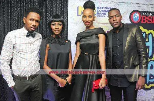 (From left) Michael Townsend, medical doctor, wearing a Ben Sherman shirt; Angelie Spencer, client and marketing manager at drennaLUNA, also wearing her own design; Kadyan Salmon, administrative assistant at drennaLUNA, wearing drennaLUNA; and Brandon Ferguson, executive financial advisor at Sagicor, in a Dolce and Gabbana suit and Zara shirt.And on style…“Contemporary.” — Michael“Uniquely me.” — Angelie“Classically chic.” — Kadyan“A black, minimalistic look.” — Brandon<strong></strong>