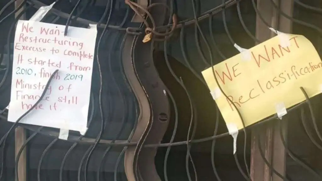 The workers are understood to have become impatient with the failure of successive governments to deliver on the 2008 reclassification exercise. In the meantime, a restructuring exercise was also completed in 2019 and sent to the Ministry with a request that the Ministry hire a consultant to do the reclassification.