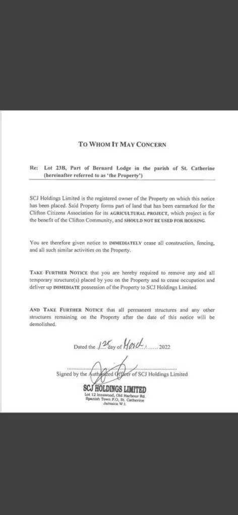 “We heard about it and an investigation was launched at which point the people were served with notices to cease all construction on the property,” said one Government source.