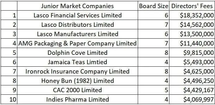 The older Junior Market firms, which have exceeded a decade, tend to be the businesses which paid their directors the best non-executive director fees. An example includes AMG Packaging & Paper Company Limited which paid $11.44 million to its seven non-executive directors in 2022 with Jamaican Teas Limited paying $5.49 million among four directors.