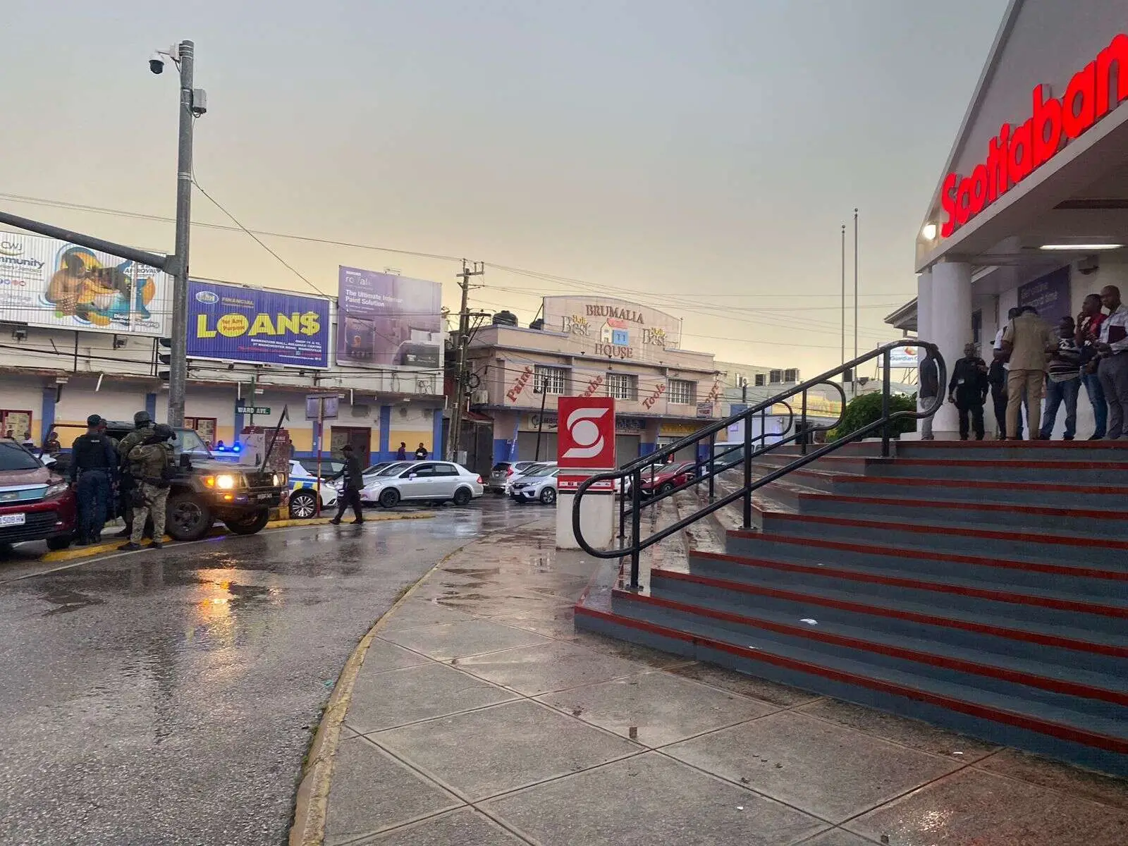 Police on scene of shootout in Mandeville where gunmen reportedly attacked a security courier.