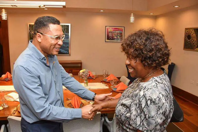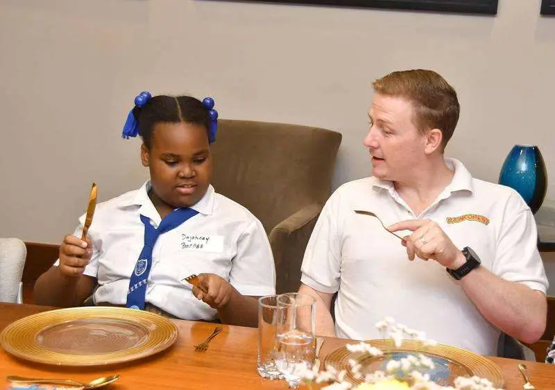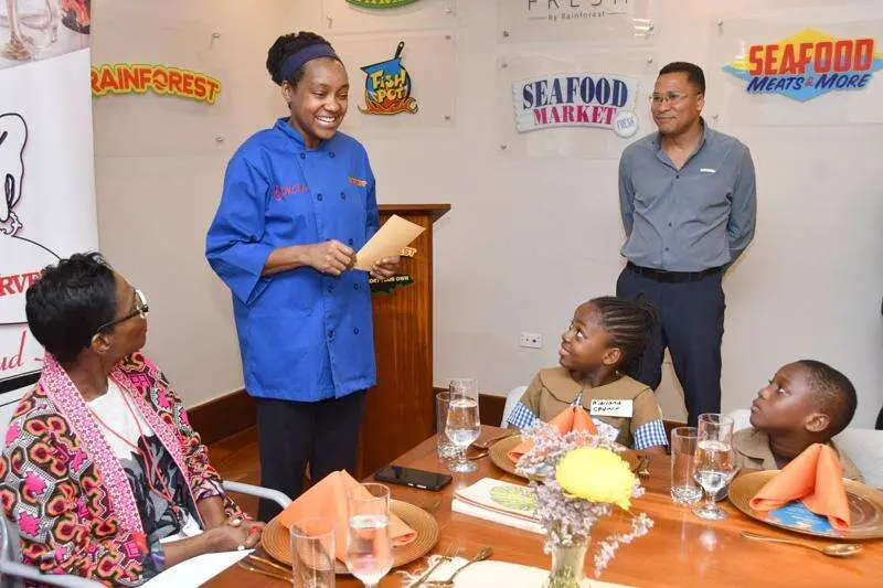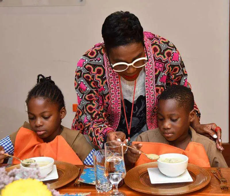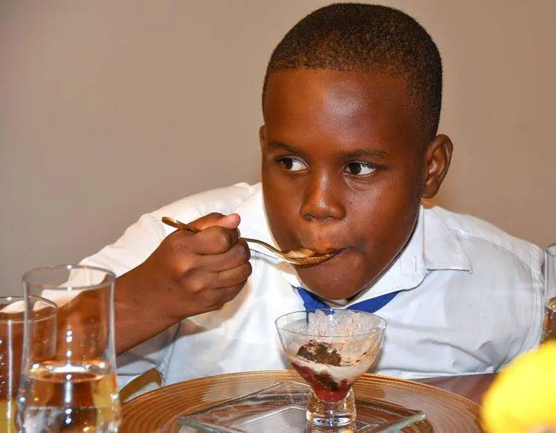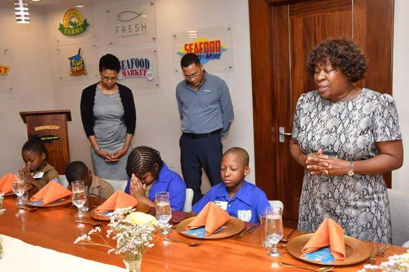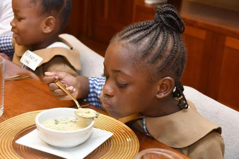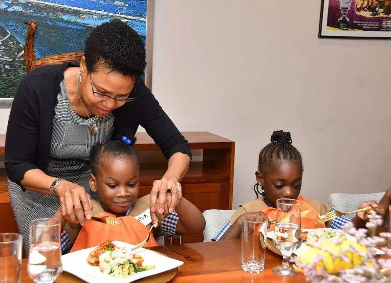 Not so fast! Before diving into the first course — callaloo fish chowder — Jamaica Observer Senior Associate Editor – Lifestyle & Social Content and Applaud It! conceptualiser Novia McDonald-Whyte, with the help of grade three student A’drianna Spence and grade one student Jourdain Pinnock, led a lesson in soup eating. With everyone ready to “scoop away” the first course was under way! The sweet and sour fish with garden rice pilaf and sauteéd vegetables was followed by a tutorial of how to correctly use a knife and fork.