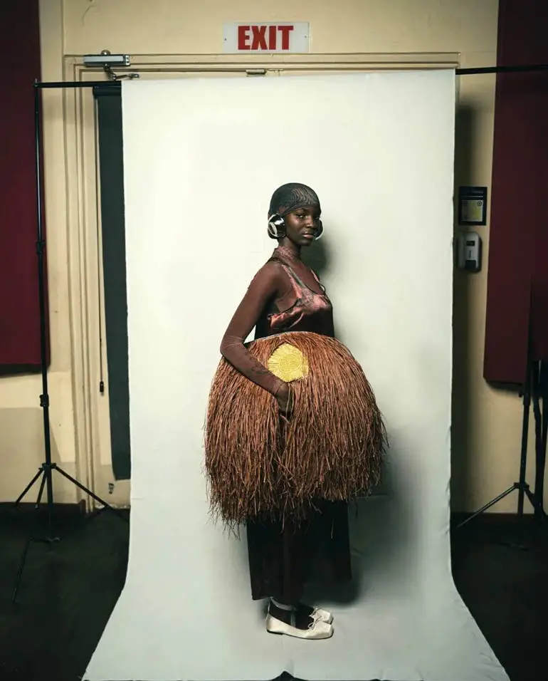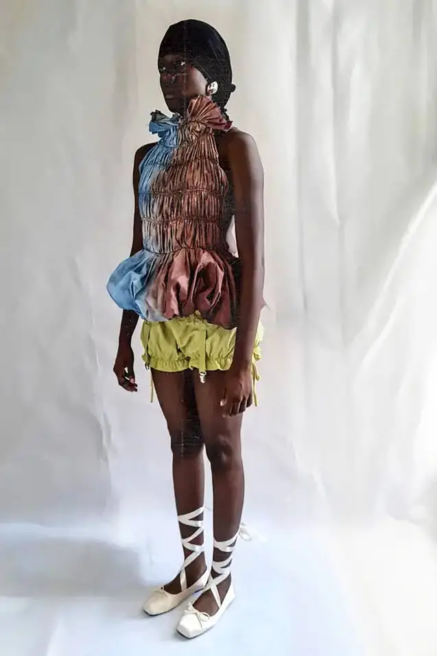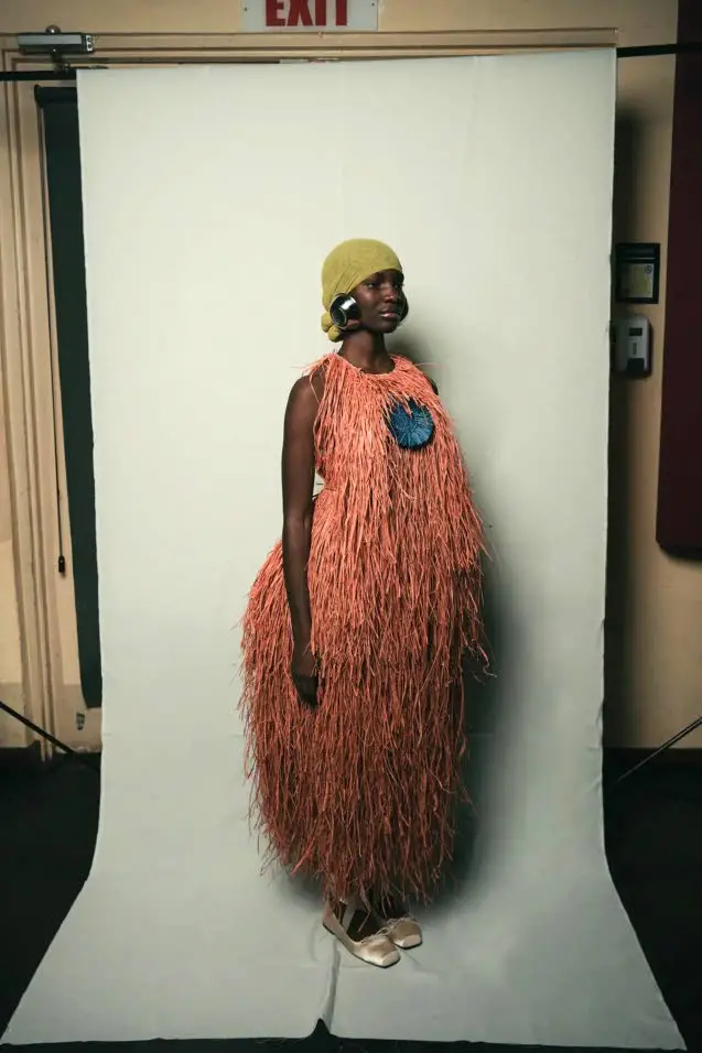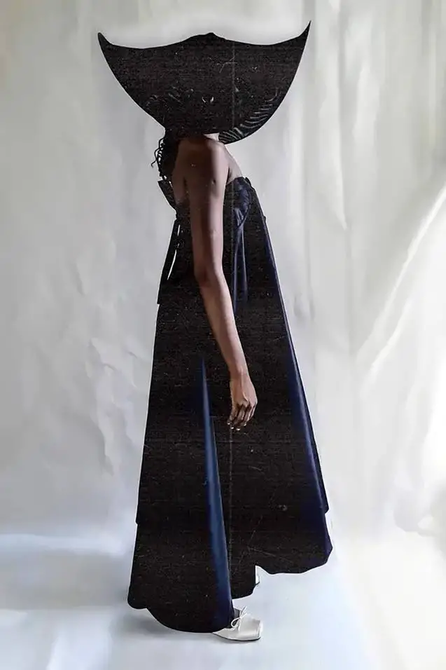 The 18-look collection features both men’s and women’s ready-to-wear and closes with sculptural pieces indicative of the brand’s DNA and dramatic silhouettes, headpieces and detailing since the designer’s graduation from Central Saint Martin’s 2023.