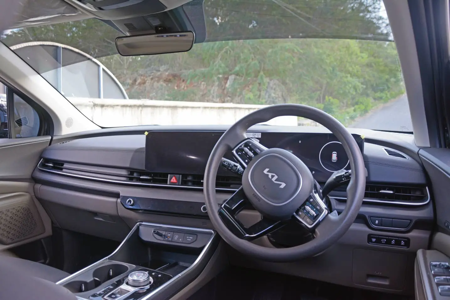 Kia knows the Carnival is big, but it’s easy to operate. Switching lanes is a breeze as a live video feed of the target lane is displayed inside the driver’s binnacle, supported by blind sport monitoring and large physical side mirrors.