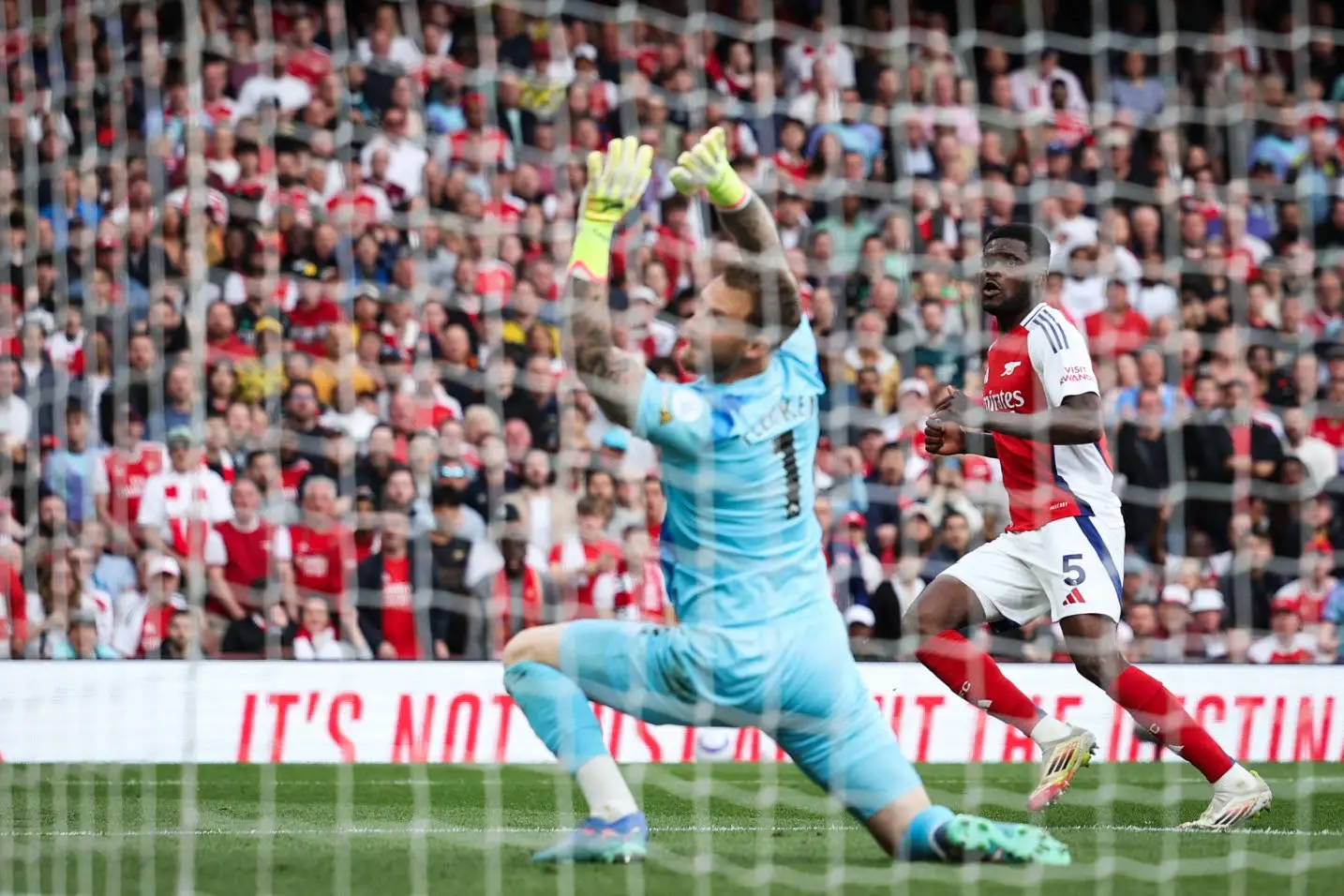 Ollie Watkins was again left on the bench by Emery but made a stunning impact with a volley over Ramsdale from Youri Tielemans’ dinked pass, 17 minutes from time.