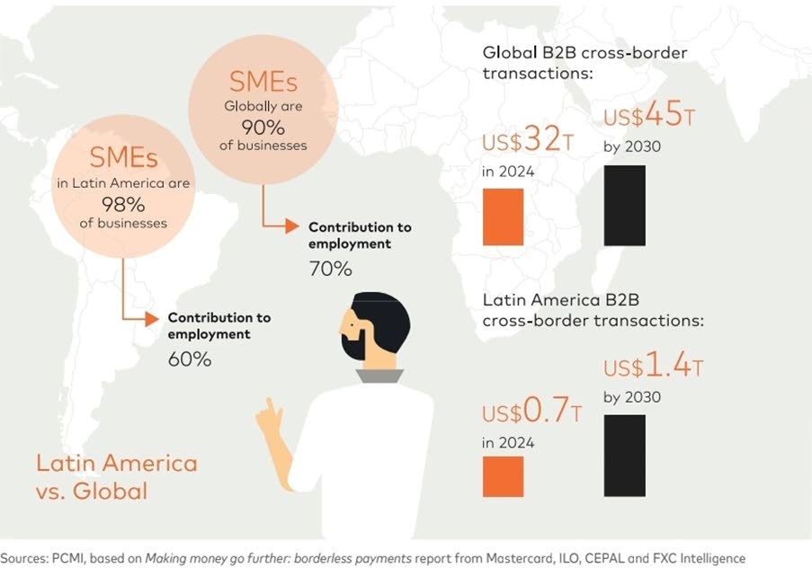 The 2025 Mastercard report, “Small businesses, big opportunity: Unlocking SME potential in Latin America’s cross-border space,” highlights that SMEs across the region represent about 98 per cent of businesses and provide 60 per cent of employment. Yet, despite their structural importance, they contribute a relatively low share of regional GDP, from 20 per cent to 35 per cent, reflecting persistent productivity gaps.