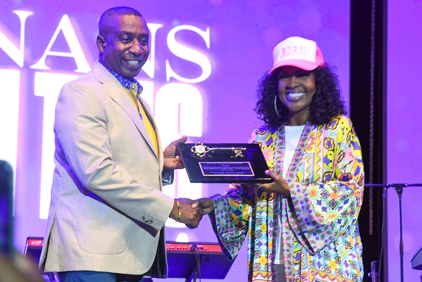 Mayor of Kingston Andrew Swaby presents the key to the city to international gospel star CeCe Winans on Friday night. (Photo: Karl Mclarty)