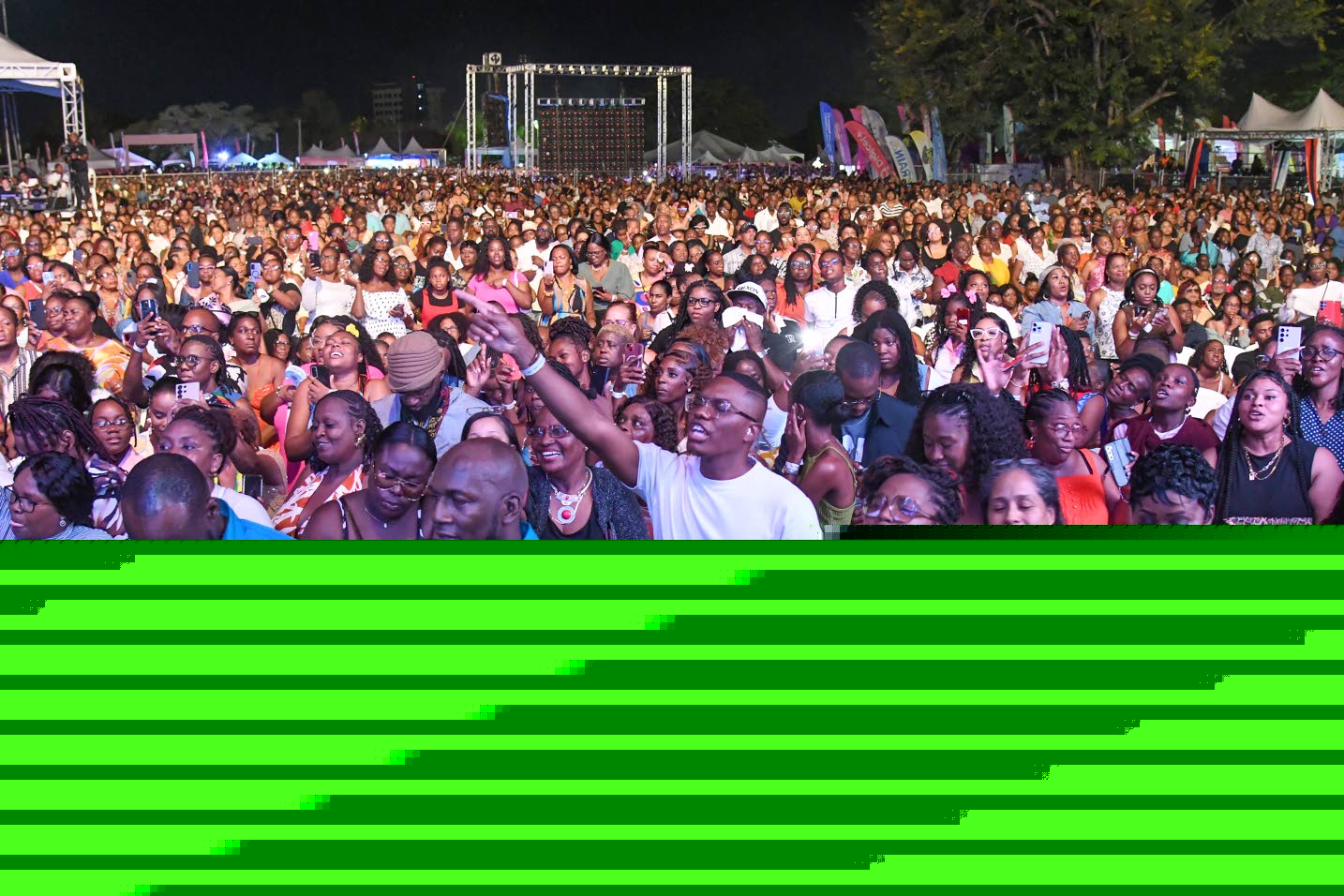 The group made a second appearance to the stage to lead the singing of the national anthem, signalling the start of the main show, which went into overdrive when singer Johnmark Wiggan hit the stage.