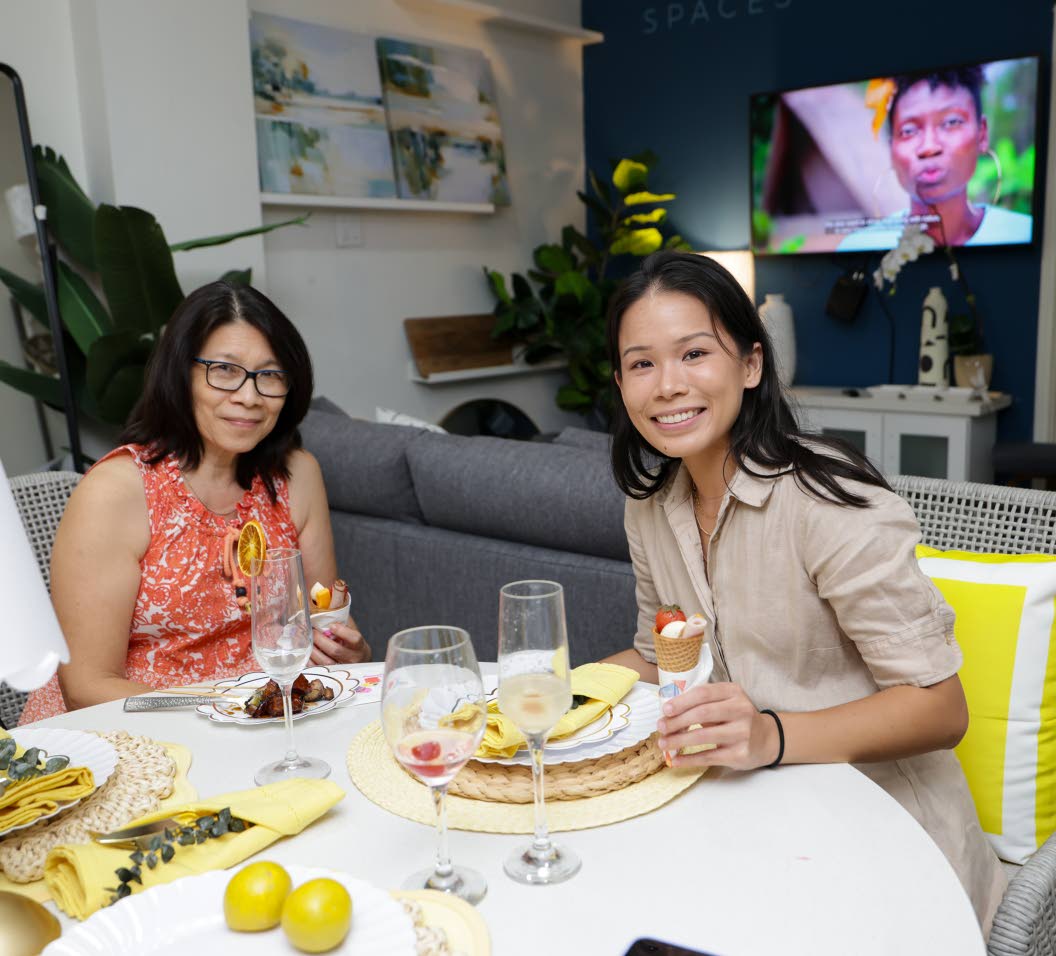 Educator at AISK and TV host Calee King Chin (right) and her daughter Nyla discovered new arrivals, and enjoyed a refreshing treat while they shopped. (Photo: Leo Hudson)