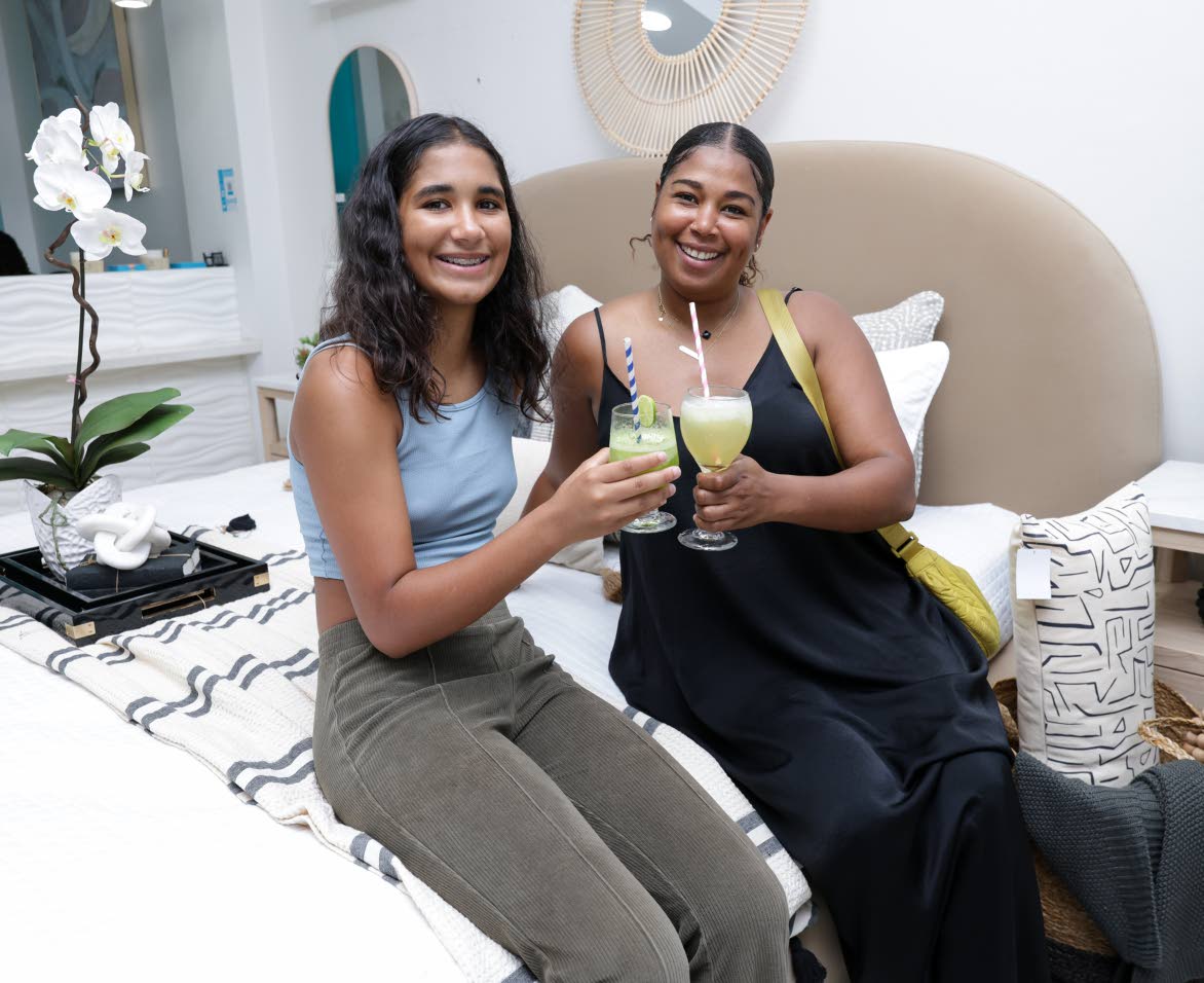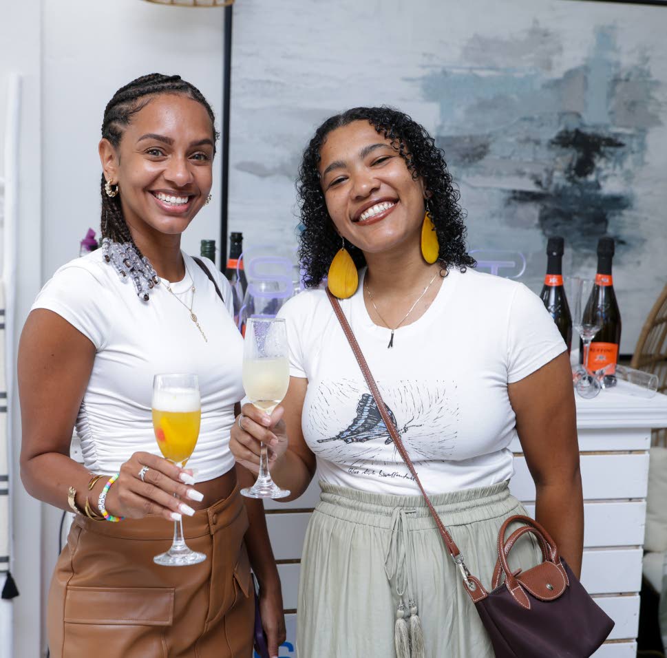 Art director Lindsey Lodenquai (left) and junior architect Courtney Payne raised a toast to a fab afternoon of sipping and shopping. (Photo: Leo Hudson)