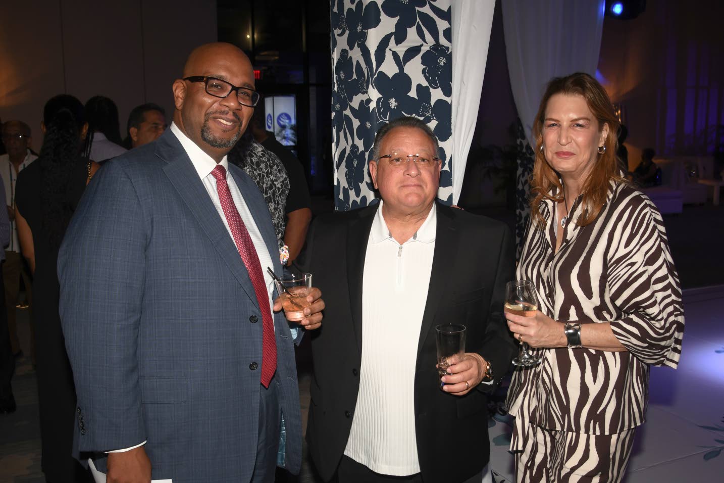 To 40 More Mayberry Investments Limted CEO Patrick Bataille (left) shared the frame with Trinidadian businessman Gerry Mouttet and his wife Margaret. Karl Mclarty