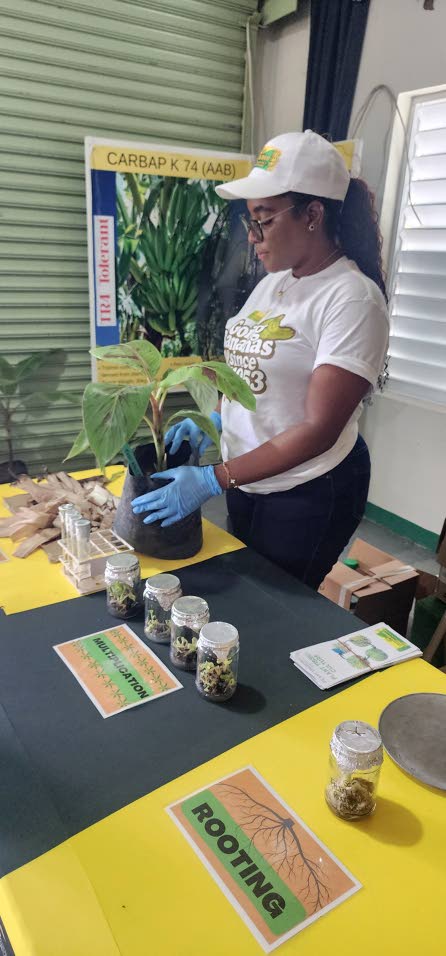 She was speaking during a demonstration of the tissue culture process at the JBB booth and display at the 71st staging of Denbigh Agricultural, Industrial and Food Show. For the past five years the JBB has been using the technique to replenish banana plants for both large and small farmers and to strengthen the crop for exponential growth. According to Clarke, the process involves in vitro micro propagation where plants are stripped and placed into containers in an environment that allows them to self-multiply under sterile conditions before being introduced to soil.