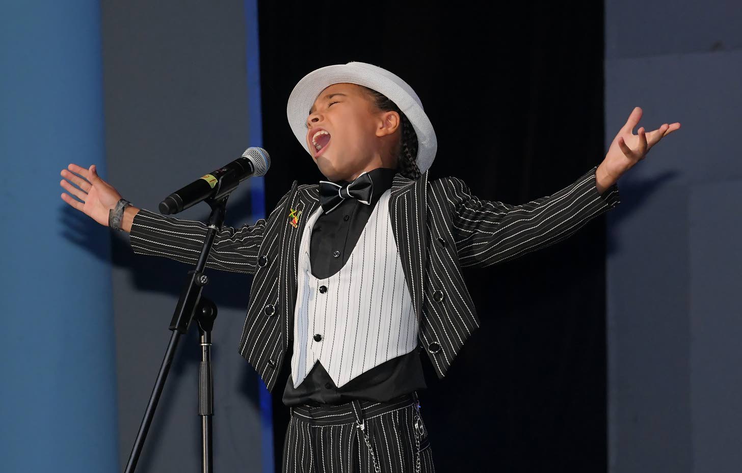 Clan Carthy Primary School student David Nicholson performs John A Wah Dat Mi Hear during the 2025 staging of Mello-Go-Roun at National Indoor Sports Centre on Monday, August 4.