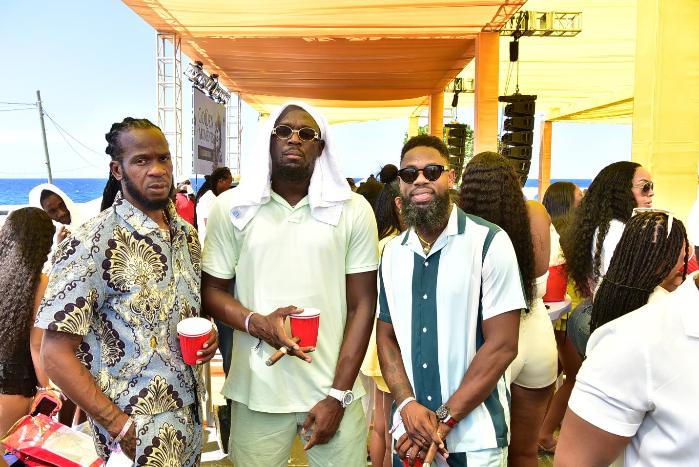 A-Team Lifestyle Out to party were sprint legend Usain Bolt (centre); former Jamaican footballer Ian “Pepe” Goodison (left) and businessman Oneil “Brisco” Brissett..