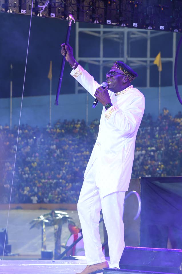 National Icon Leroy Sibbles connects with the thousands in the National Stadium for Grand Gala 2025. (Photo: Karl Mclarty)