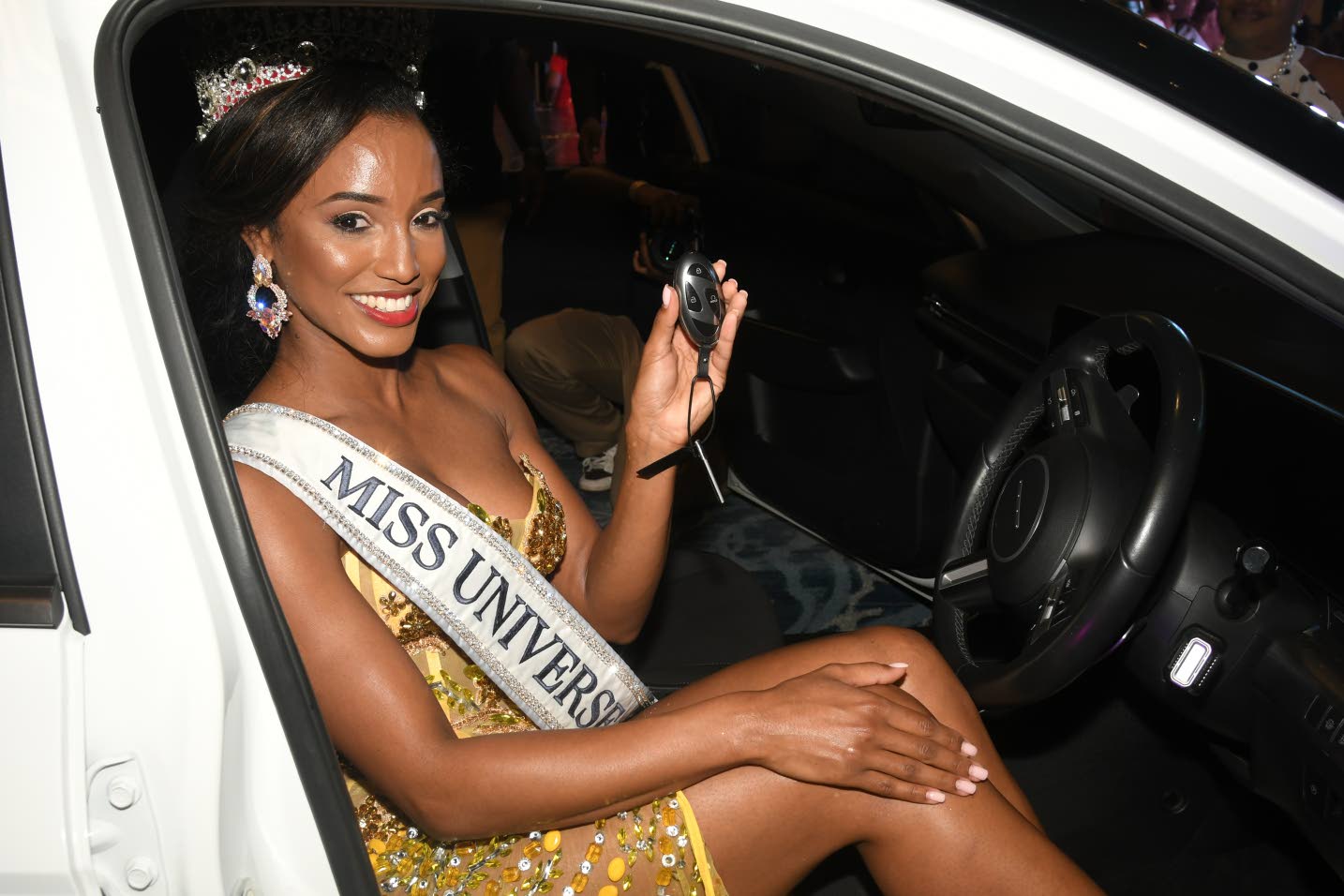 Newly crowned Miss Universe Jamaica 2025 and Hyundai’s new brand ambassador Dr Gabrielle Henry celebrated her win in the hybrid 2025 Hyundai Kona. (Photo: Karl Mclarty)