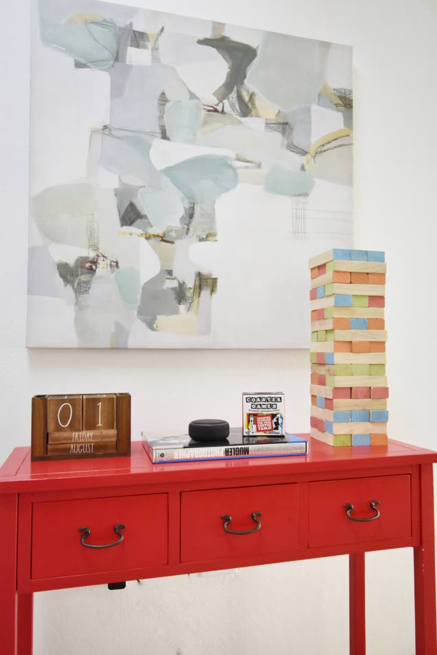 A foosball table sits in the hot desk area to facilitate a quick mental break or collaborating with other members..