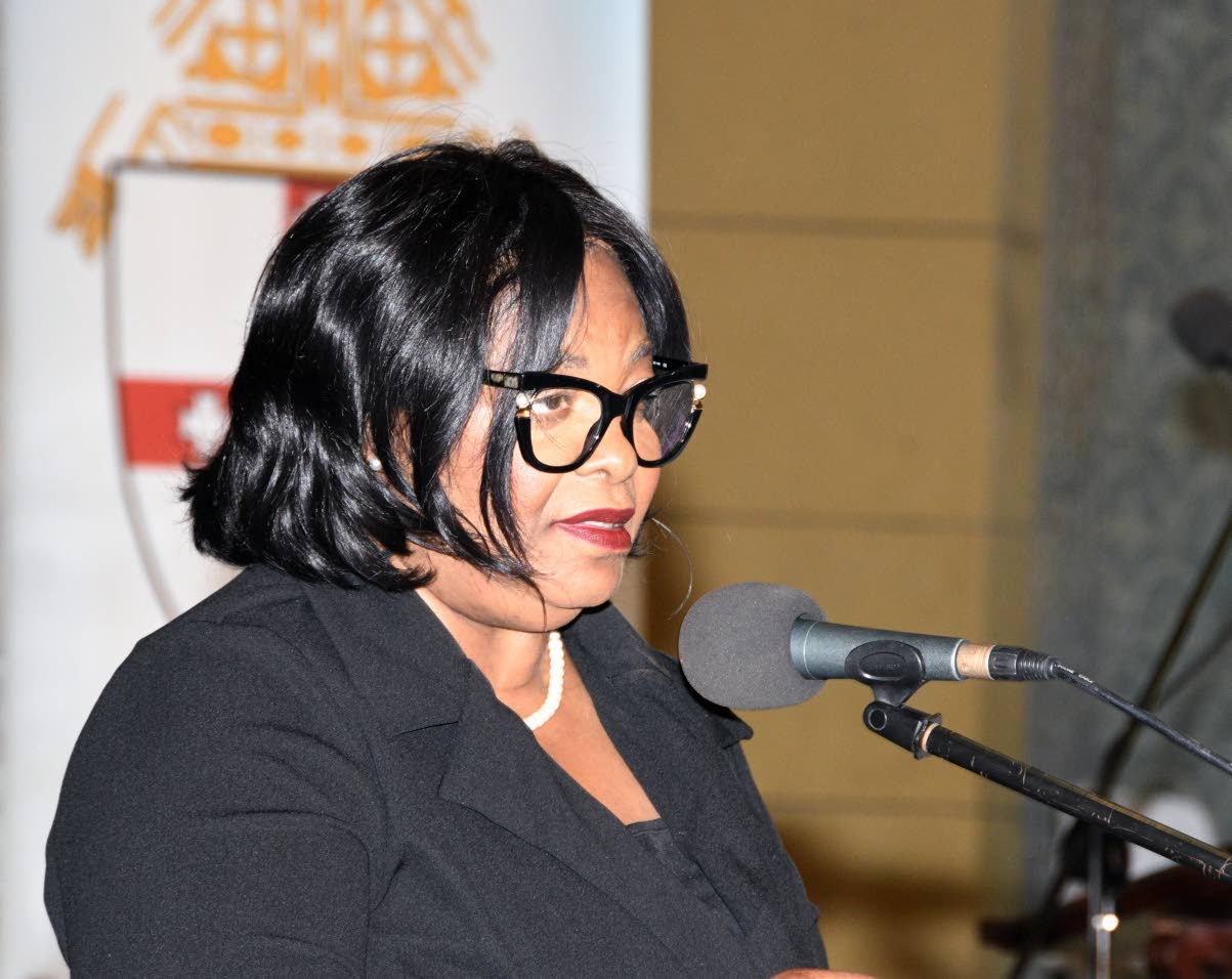 Delita McCallum, sister of the late Michael McCallum, reads the remembrance at the thanksgiving service for his life, held Saturday at Holy Trinity Cathedral in Kingston. (Photo: Joseph Wellington)