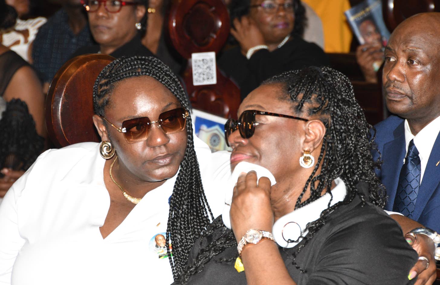 Micheal McCallum’s widow Verona McCallum (right) is being comforted by her daughter Breana McCallum during the thanksgiving service for his life at Holy Trinity Cathedral in Kingston on Saturday. (Photo: Joseph Wellington)