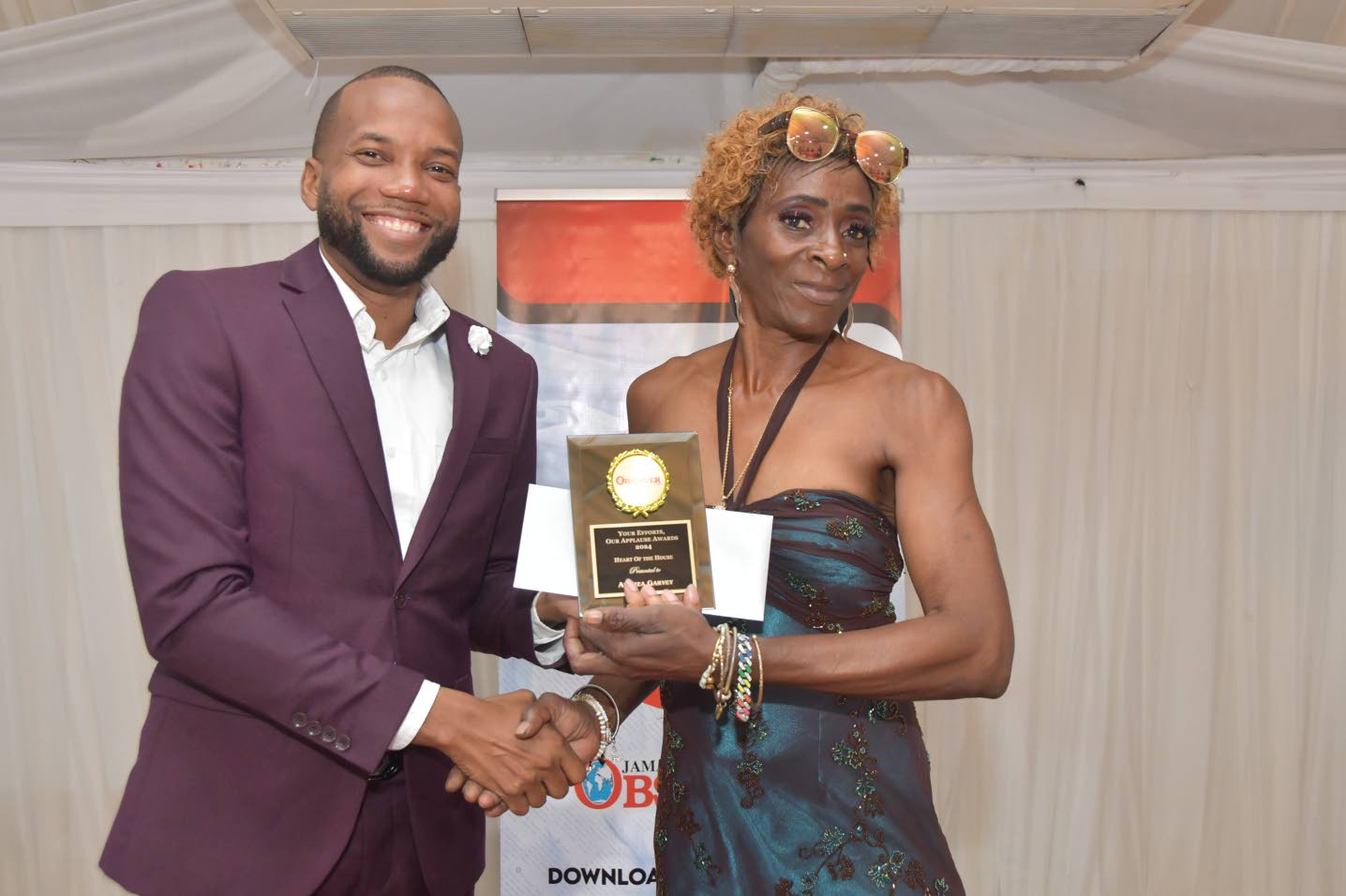 Resource Manager Gavay Watts presents the 2024 Heart of the House award to Andrea “Betty” Garvey. (Photo: Naphtali Junior)