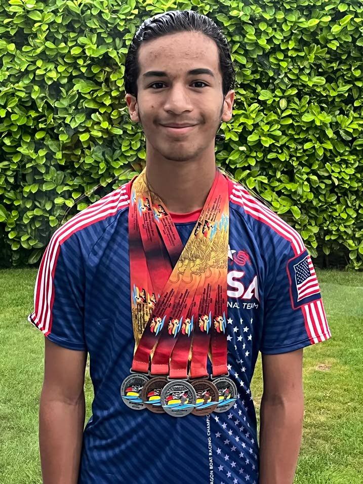 A dragon-boat racer since age eight, Fernández-Calienes started with the Blazing Paddles racing team in Hollywood, Florida. Now with the SACA Golden Dragons, based in Tampa, Fernández-Calienes has raced in Florida, Alabama, Puerto Rico, The Bahamas, and Jamaica. His racing highlights include winning two silver medals at the Pan American Club Crew Championships, at age 12, in Panama. He also competed among adults, representing the SACA Golden Dragons. At age 14 Fernández-Calienes was selected for the United States’s national Dragon Boat team, Junior Division, and travelled to Brandenburg, Germany, where he represented the USA at the World Dragon Boat Racing Championships, winning six medals in both open and mixed junior divisions.