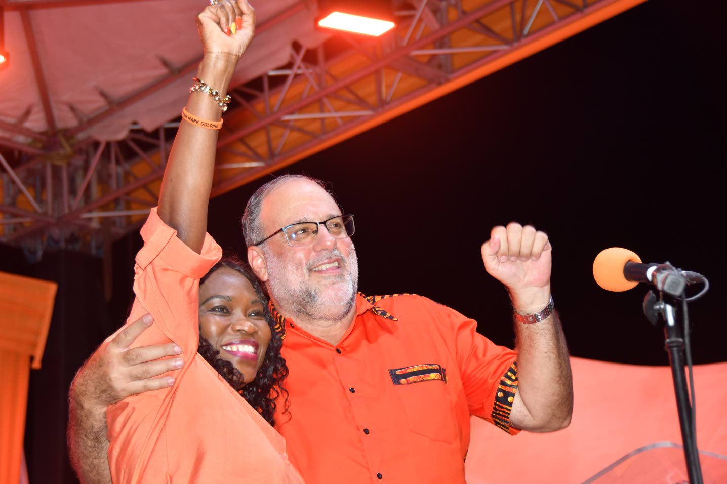 Speaker after speaker described Golding as their security guard as thousands of orange-clad Comrades blew horns, waved flags and shouted.