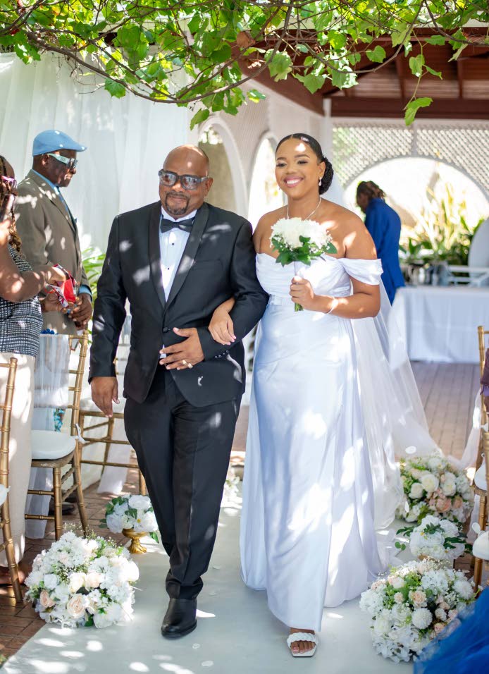 The celebration continued at the reception, where guests enjoyed catering provided by the Hibiscus Lodge. An intimate gathering of family and friends shared in the newly-weds’ joy, offering toasts before Shaquille and Christina cut their two-tiered fruitcake provided by Janarl Creations. The newly-weds opened the dance floor with Shania Twain’s From This Moment, a perfect song to celebrate their journey and their new life together.