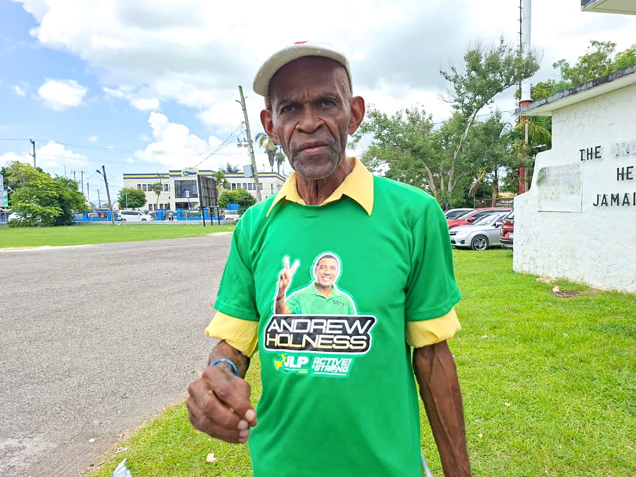 Independent candidate Don Foote, dressed in a Jamaica Labour Party T-shirt, talks with the Jamaica Observer after being nominated to contest the Westmoreland Central seat on Monday.