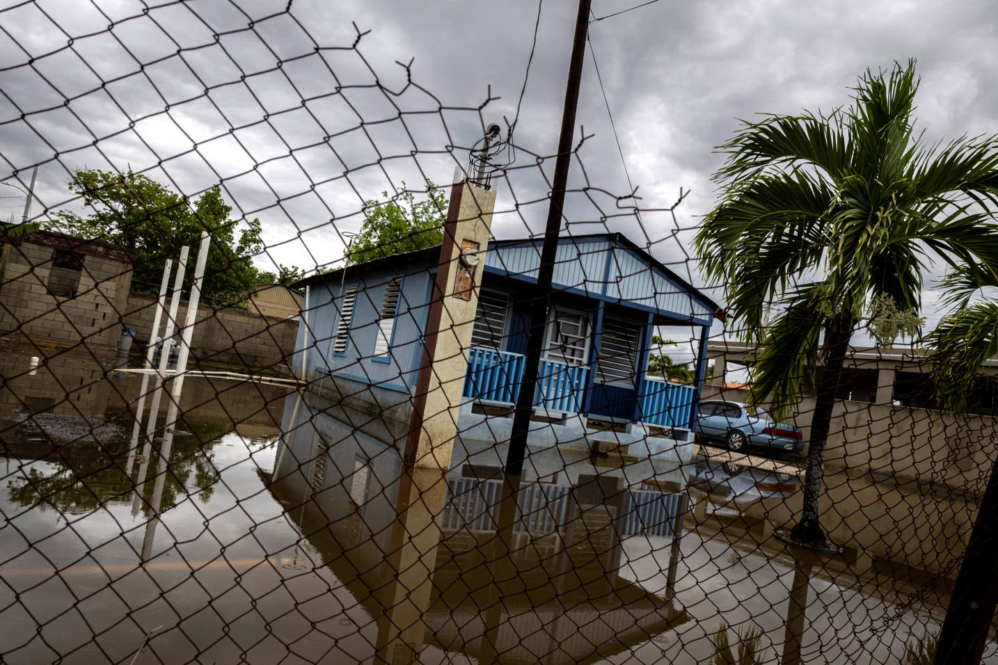 GUAYAMA, Pureto Rico — A house is seen partially flooded as Hurricane Erin leaves the Guayama region Puerto Rico on August 17, 2025. Offshore Hurricane Erin was downgraded to a Category 3 storm early Sunday, as rain lashed Caribbean islands and weather officials warned of possible flash floods and landslides.