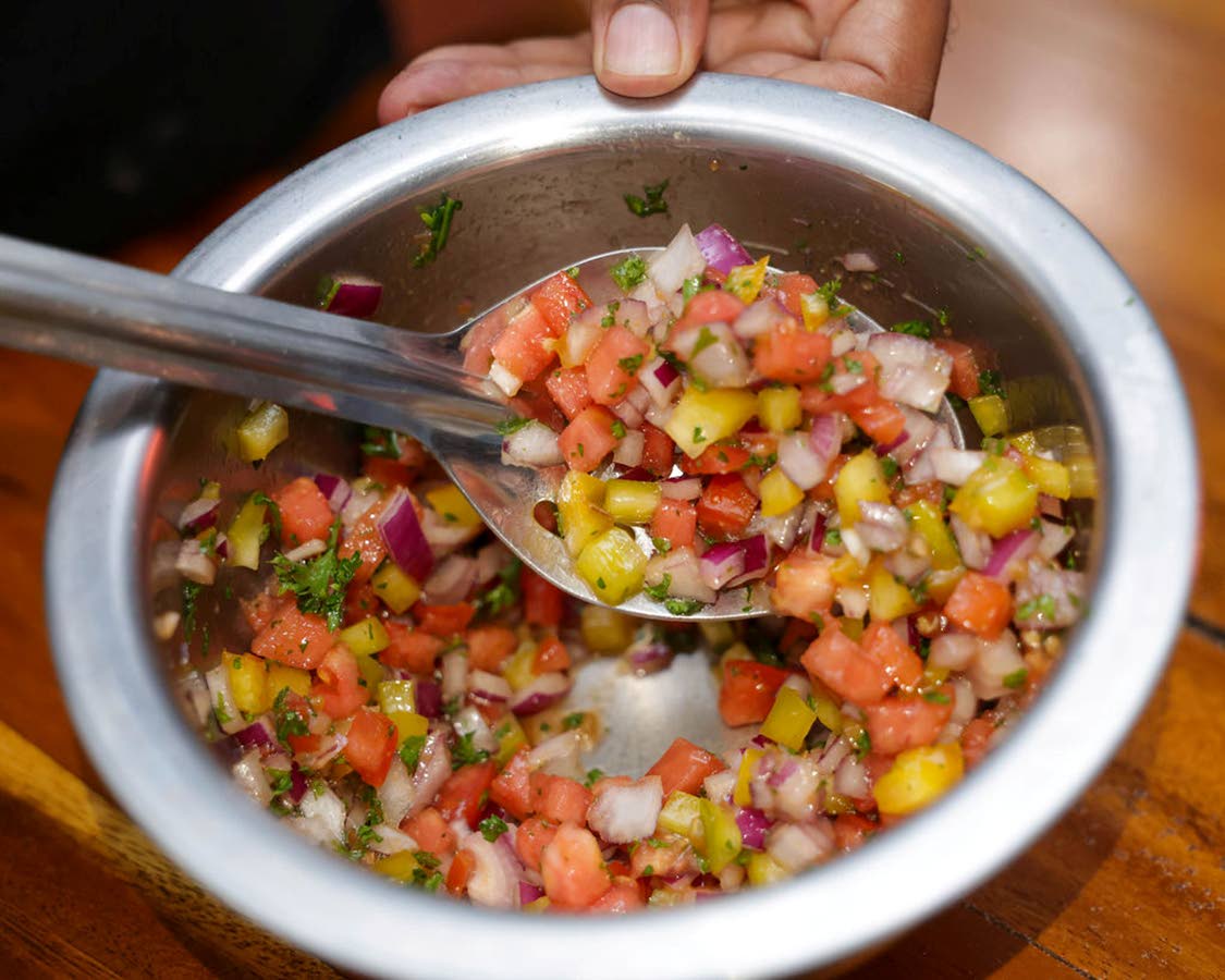 3. Combine all the diced ingredients and parsley mix together and toss in olive oil and salt and pepper to make the salsa.