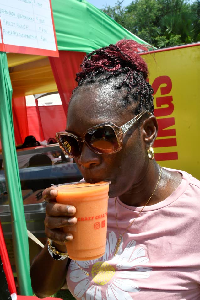 National Water Commission officer Telsia Bingham took a sip of her Tropi Loco smoothie from the Stocolocco Smoothie Bar. (Photo: Karl Mclarty)