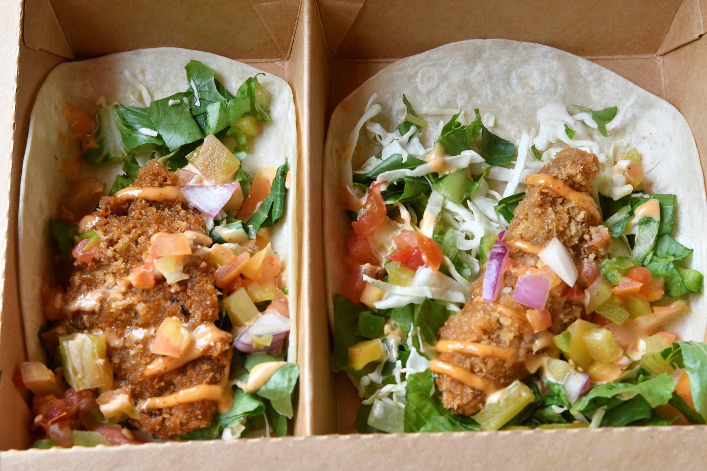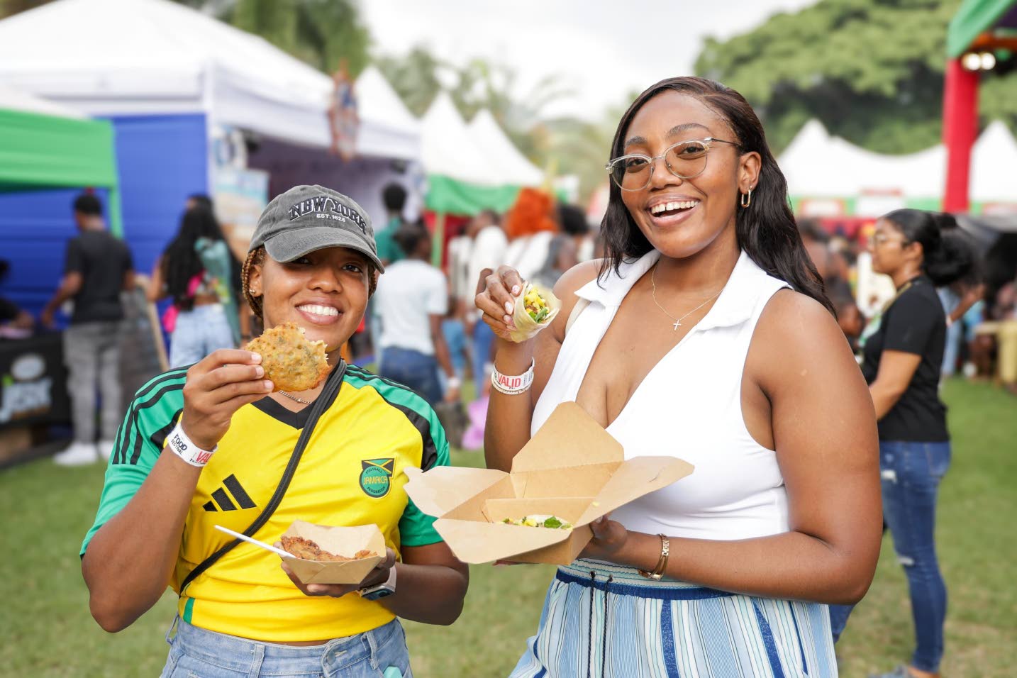 Dr Rolayne Vickers (left) opted for stamp and go, while Dr Peta-Jhay Shelly went with tacos at the Grace Food Festival food court. (Photo: LH Multimedia)