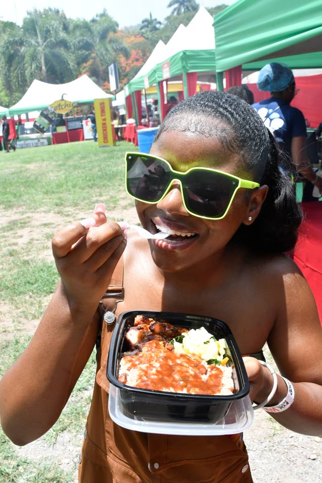 Communications specialist Reajean Bennett savoured her jerk pork meal from Fyah Side Jerk. (Photo: Karl Mclarty)