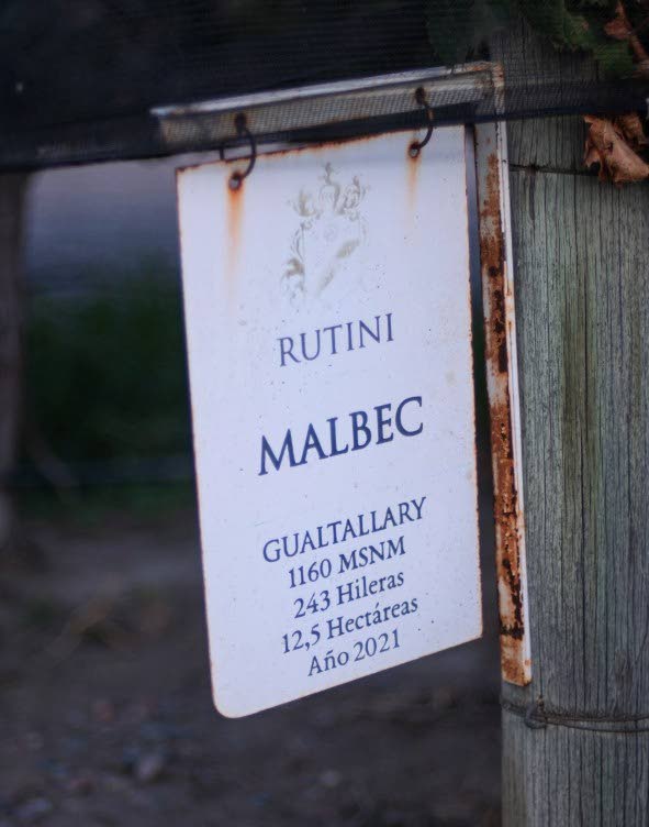 Signage at the Gualtallary Vineyards where Rutini grows its award-winning Malbec. (PHOTO BY RUTINI WINES)