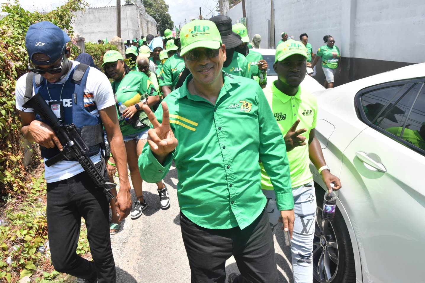 The JLP’s Donovan Williams, who is seeking to retain the Kingston Central seat, walks the constituency on nomination day, August 18. Photo: Naphtali Junior