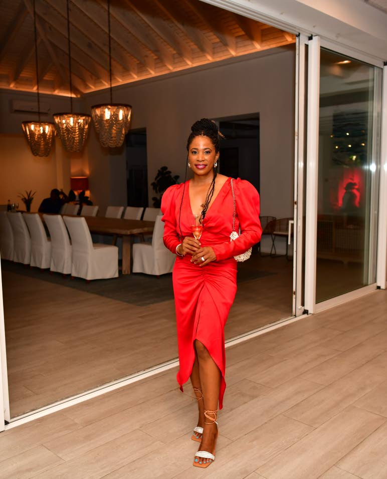 All Fired Up Caribbean Solar Life Marketing & Sales Director Chevaughne Miller cut a glam figure in crimson. Aceion Cunningham
