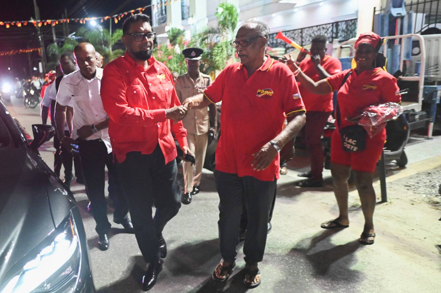 Guyana’s president and presidential candidate Mohamed Irfaan Ali greets a supporter during a campaign rally in Georgetown, Guyana, on August 26, 2025.