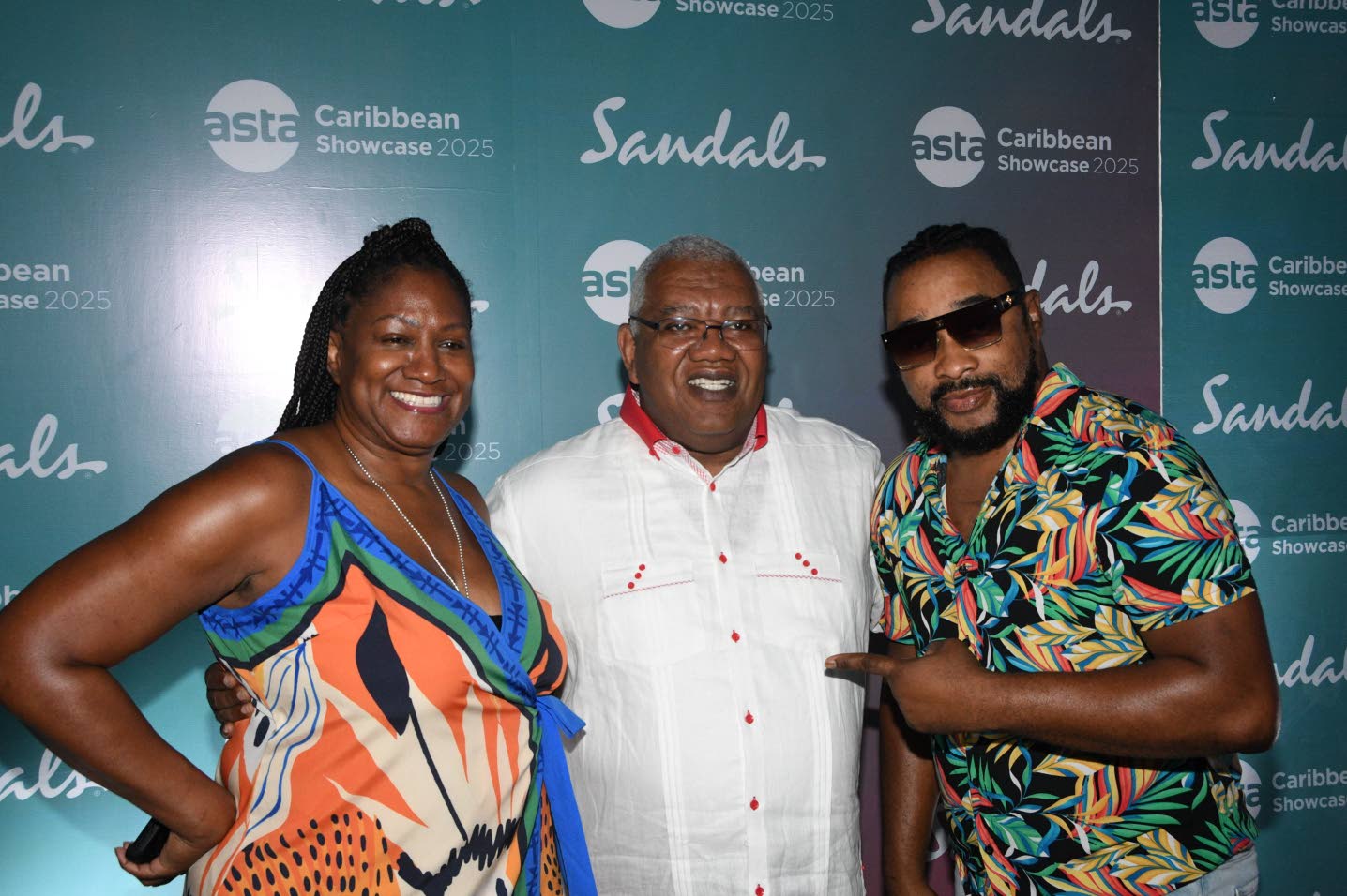 Jamaican Gary Sadler (centre) of Unique Vacations offers a photo opportunity with travel advisors Larae Dudley, CEO of Dudley Dream Travel, and Gary Michael Dixon, also of Dudley Dream, which operates out of Washington, DC. Joseph Wellington