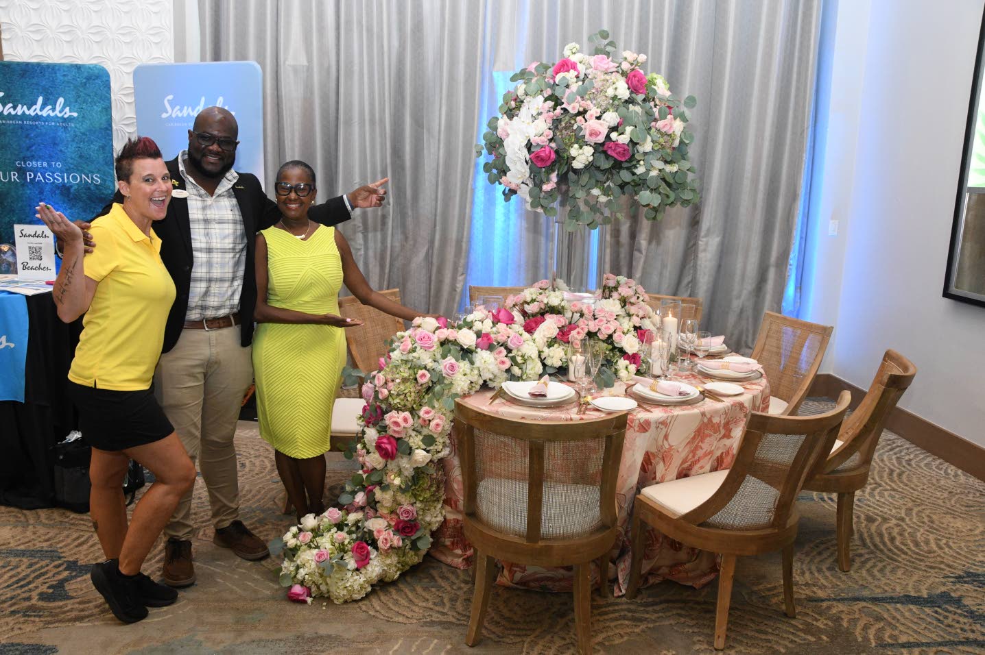 Sandals Director of Romance and Weddings Marsha Ann-Donaldson (right) is joined by Jennifer Bell, travel advisor and wedding specialist, and Obrian Heron, general manager of Sandals South Coast, as she shows off the resort’s Aisle-to-Aisle wedding decor. Joseph Wellington