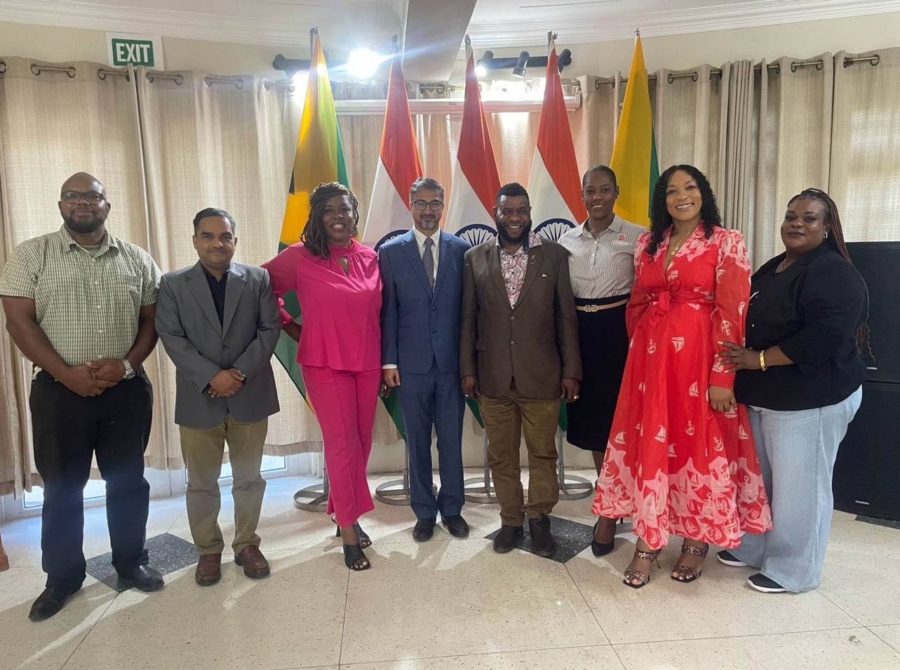 Members of the SBAJ met with the Indian High Commission recently. From left are Lionel Campbell of LionErica Security; Sanjay Gupta, second secretary (HoC); Denise Williams, 2nd VP at SBAJ and CEO of Public Relations by Financially Focused; Indian High Commissioner Shri Mayank Joshi; Garnett Reid, president of the SBAJ; Sean Grant, CEO of Sage Delights; Althea McPhearson of Thiah’s Juices; and Veneish Wallace of ElizaCare Home Health Care Services.