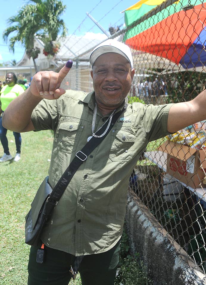 Damion Higgins, who lives in Cuba, shows that he voted for Dr Michelle Charles in St Thomas Eastern on Wednesday. Higgins said he had to come home to vote to ensure that the development taking place in the parish continues. (Photos: Garfield Robinson)