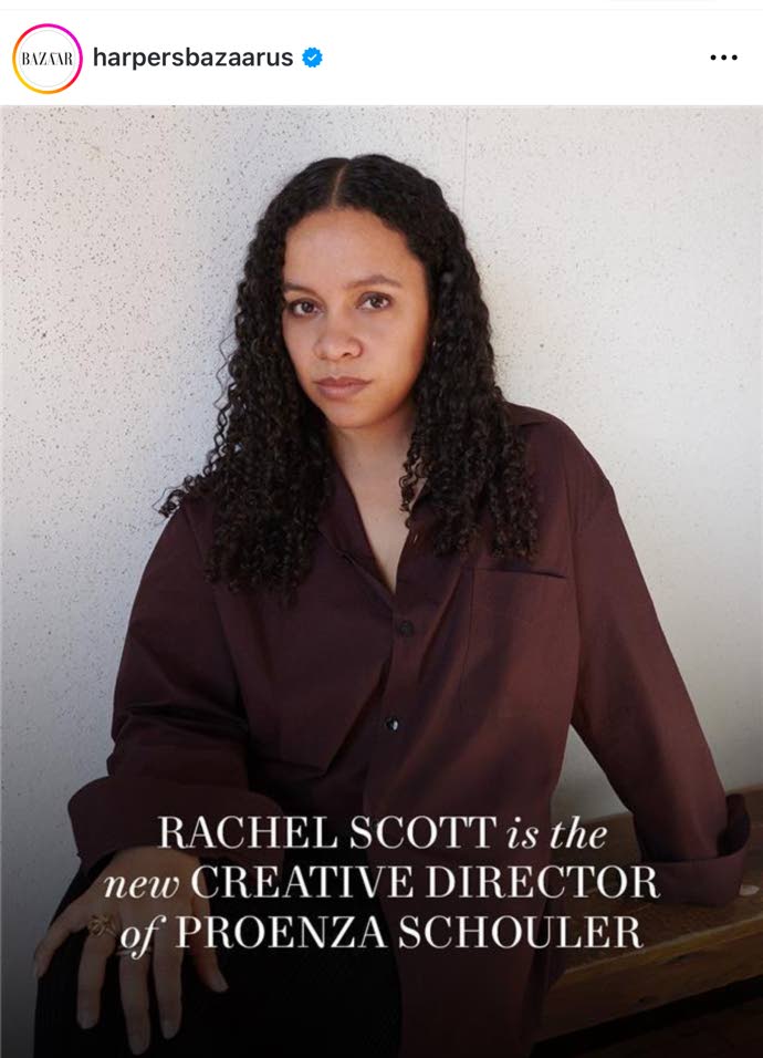 Jamaican-born fashion designer Rachel Scott Is the new creative director of Proenza Schouler.Photographed by Brianna Capozzi via/@harpersbazaarus