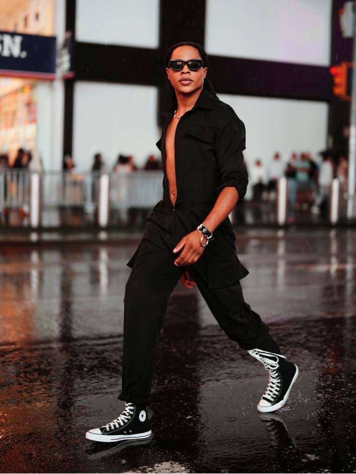 Warming Up Stepping into a jam-packed NYFW schedule, wearing statement-making Chucks, was Jamaican stylist Neko “Bootleg Rocstar” Kelly. IG/@bootlegrocstar