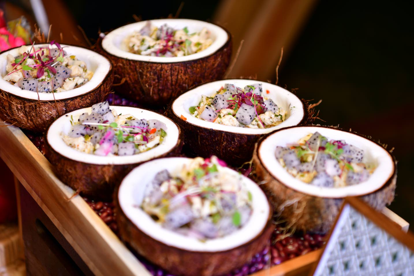 The event showcased the artistry of the teams, each presenting dishes that elevated traditional fare from different cuisines. From seafood paella and beef tacos from RIU, sushi and tandoor options from Playa Group, queen conch ceviche and butter poached Caribbean lobster from Iberostar. Guests wandered through food stations nestled among the estate’s lush gardens, sipping fine wines from CPJ and savouring bites that told stories of culinary excellence.