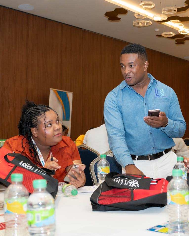 CEO of RA Williams Distributors Limited Audley Reid shares a light moment with a pharmacist during a diabetes workshop at the recently held conference.