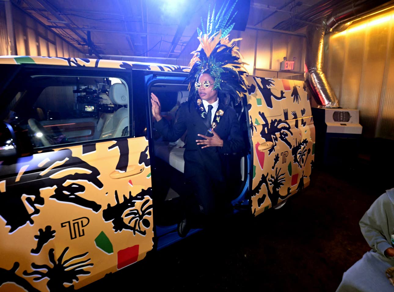 Buzzworthy Jamaican stylist Neko “Bootleg Rocstar” Kelly shared the spotlight with the Volkswagen ID Buzz at the Buzz x Theophilio NYFW Runway Show in a Levac Designs suit, Converse loafers, and a show-stopping custom headpiece by Annaixe. AFP