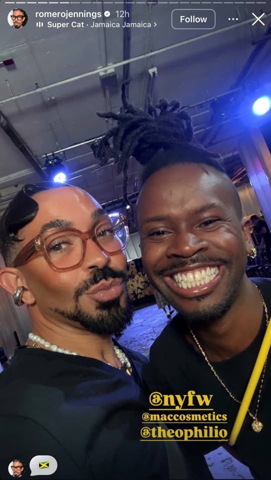 Pull Up With the faces of the Theophilio S/S 26 models beat to perfection, MAC Cosmetics Global Director of Makeup Romero Jennings (left) found time to snap an ussie with fellow Jamaican, Theophilio founder and creative director Edvin Thompson.IG/@romerojennings
