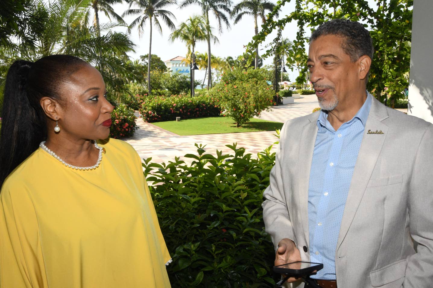 Caribbean Tourism Organisation Secretary General and CEO Dona Regis-Prosper is all ears as Sandals Regional Managing Director, Jamaica Jeremy Jones welcomes her to Sandals South Coast where she participated in the ASTA Caribbean Showcase 2025. Joseph Wellington