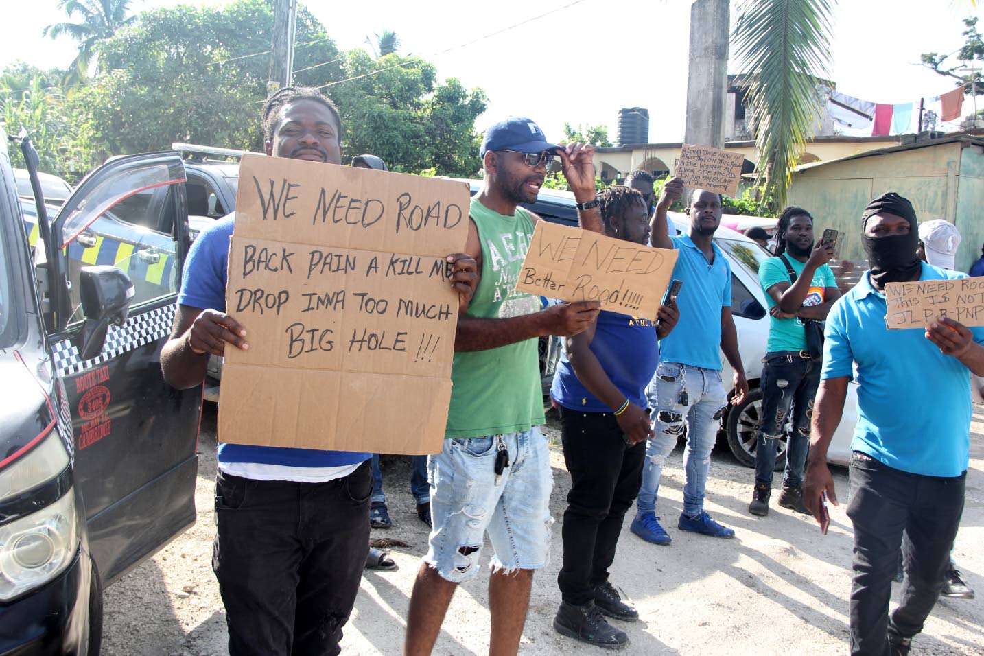 MONTPELIER, St James — Member of Parliament-elect for St James Southern Nekeisha Burchell on Monday commiserated with placard-waving transport operators who parked their vehicles and took to the streets in a peaceful protest to call attention to a crater-riddled stretch of the Montpelier main road.