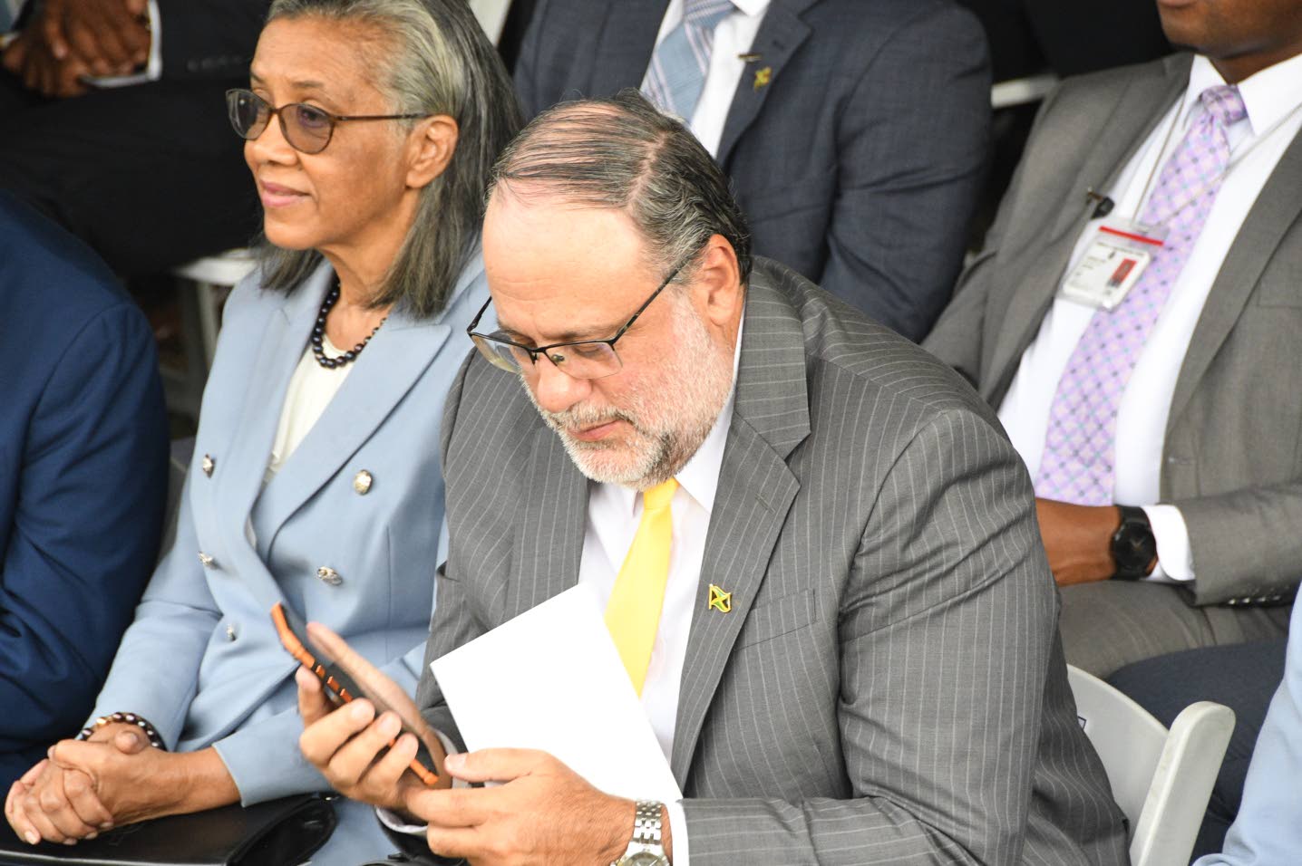 Opposition Leader Mark Golding appears to be checking his messages before the start of the swaering-in ceremony for Prime Minister Dr Andrew Holness at King’s House in St Andrew on Tuesday. (Photo: Joseph Wellington)